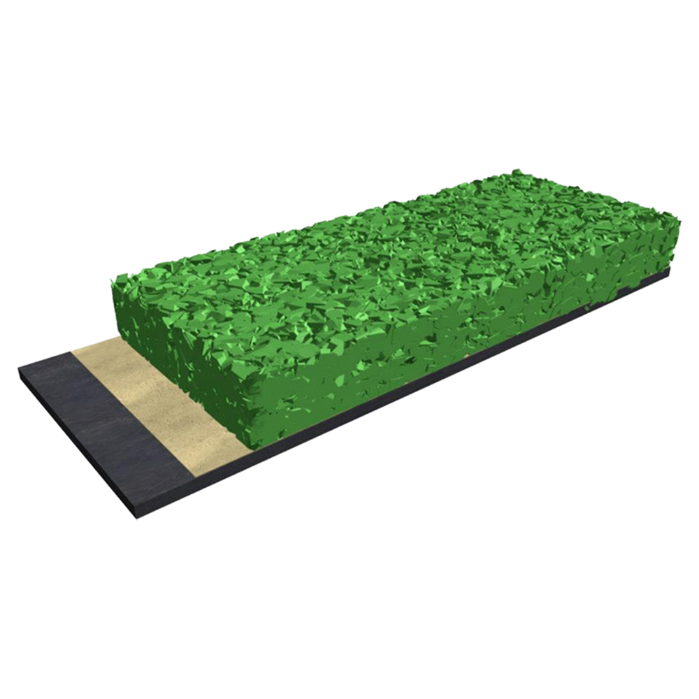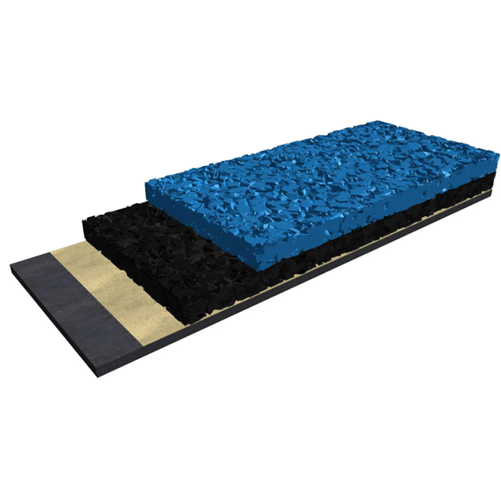 • Kaplama kür aldıktan sonra iklime uygun olarak seçilmiş PU BİNDER (PREPOLYMER) ile bağlanmış özel 1,0-3,0 mm çapında SBR granüllerin özel makinalar yardımı ile tüm sahaya 8mm. Kalınlıkta serilmesi ile oluşacak elastik tabaka imali yapılacaktır.